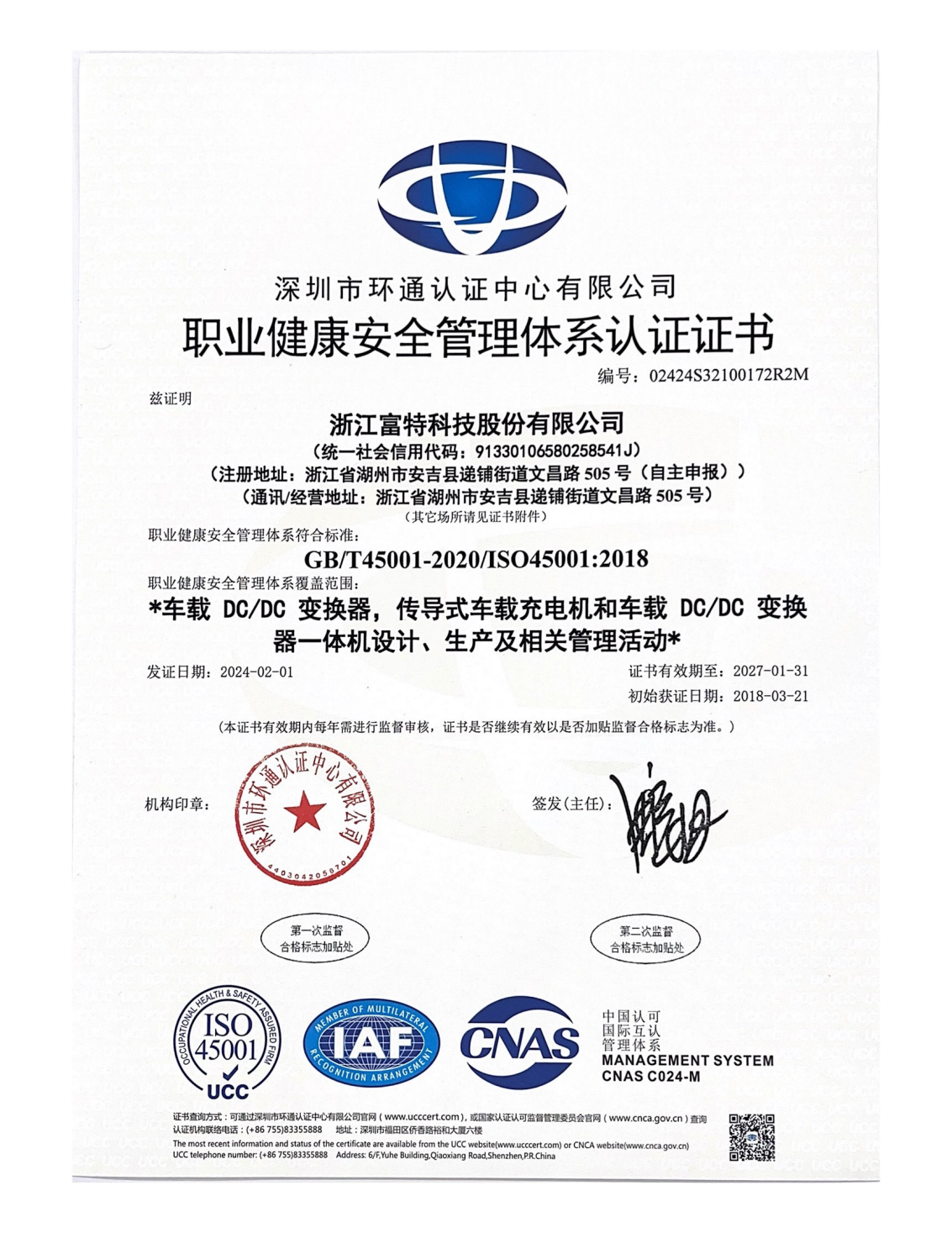 浙江富特科技股份有限公司,成立于2011年8月,生產基地位于湖州市安吉縣,研發中心位于杭州市西湖區、西安市高新區,是一家專注于新能源汽車核心零部件的國家級高新技術企業,是國內新能源汽車車載充電機及車載 DC/DC 轉換器的主要供應商。