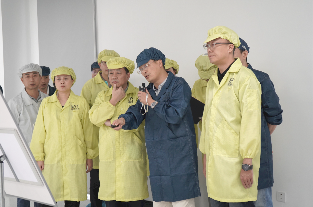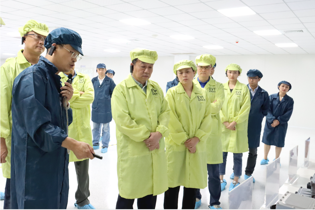 隨后,在現(xiàn)場工作人員的指引下,各位領(lǐng)導(dǎo)、嘉賓分為四個參觀指導(dǎo)小組,按照生產(chǎn)線要求著裝靜電服、佩戴靜電帽、穿戴靜電鞋套,進入產(chǎn)線參觀指導(dǎo)。